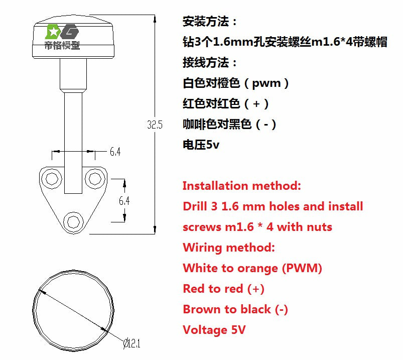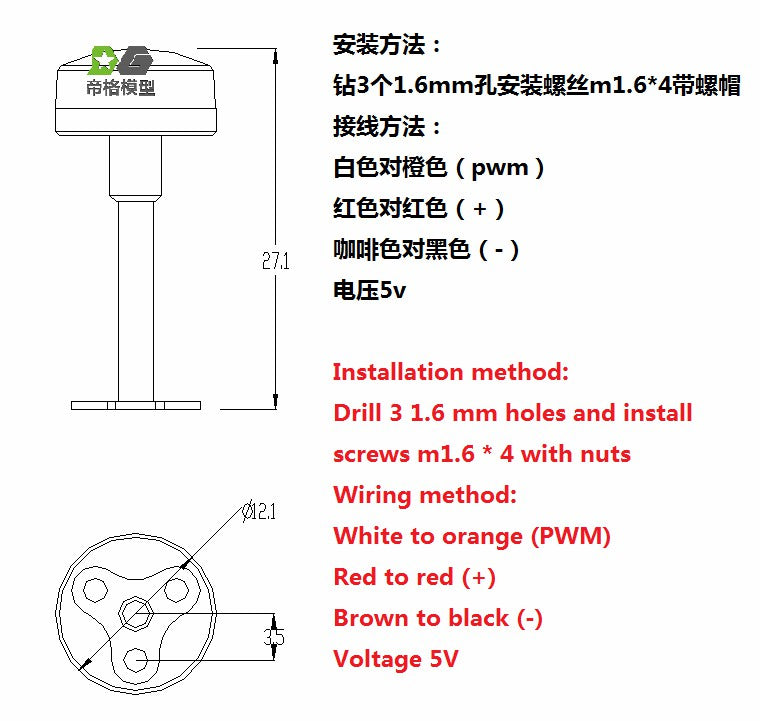 Revolving light 12mm diameter. 4 rotation modes. Maximum BEC 5.0V!
